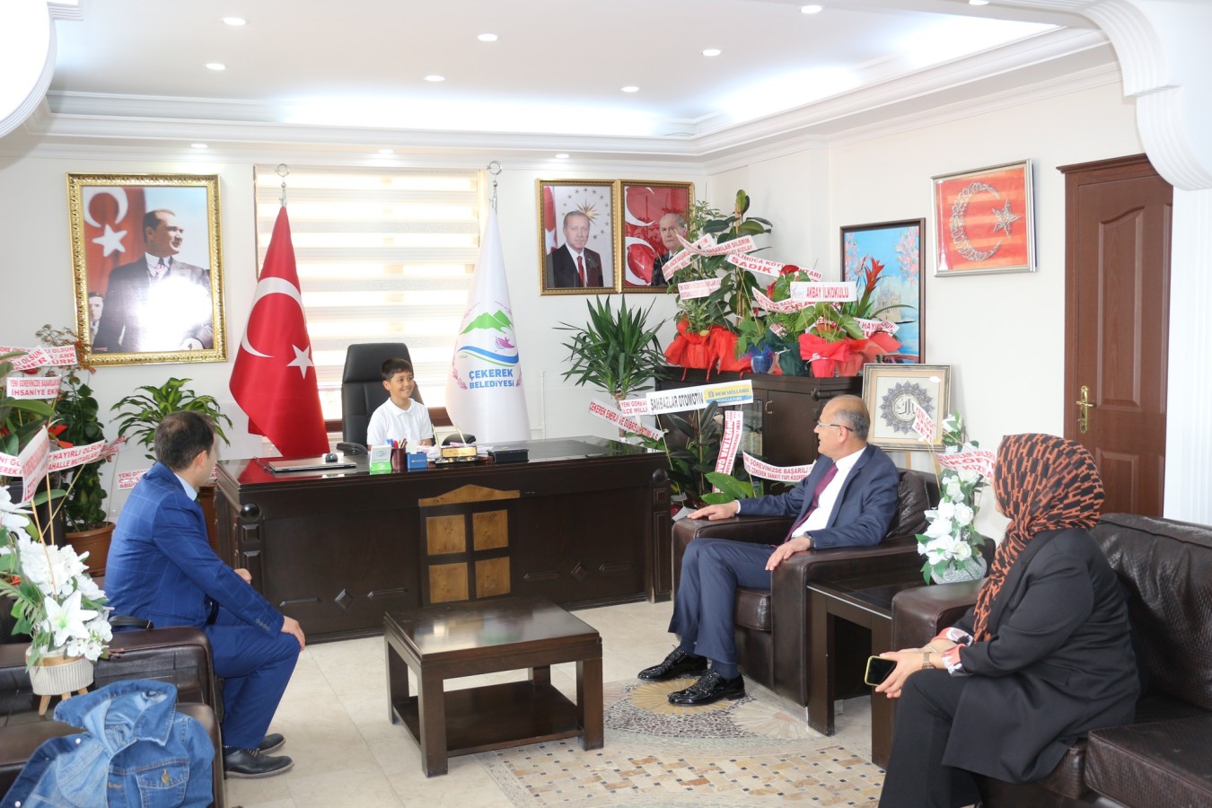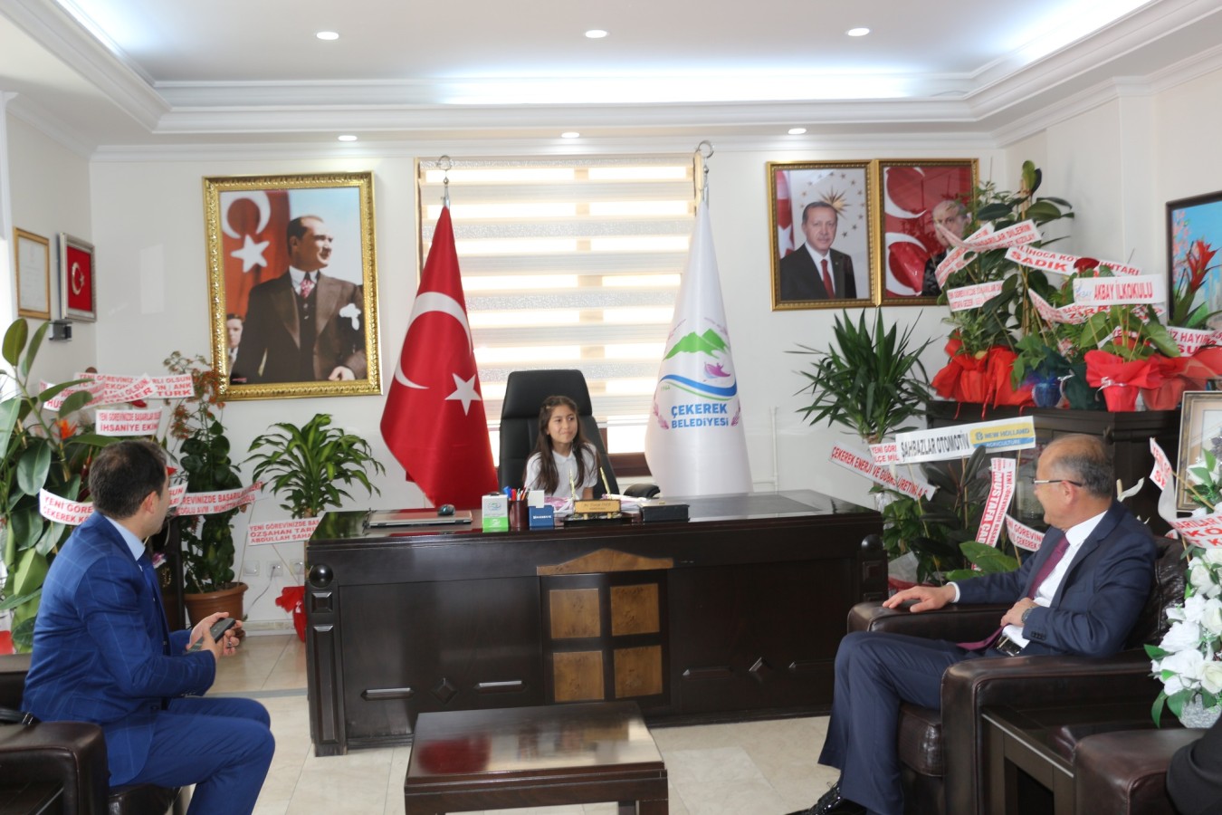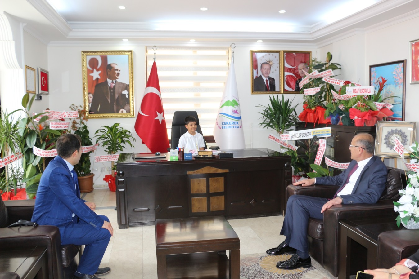 23 Nisan Ulusal Egemenlik ve Çocuk Bayramı dolayısıyla Çekerek Belediye Başkanı Av. Üzeyir İNCE’nin makam koltuğuna Akbay İlkokulu 4/B sınıfı öğrencileri Hira TUZLU ve Tahsin Eren KAPLAN'a teslim edildi.