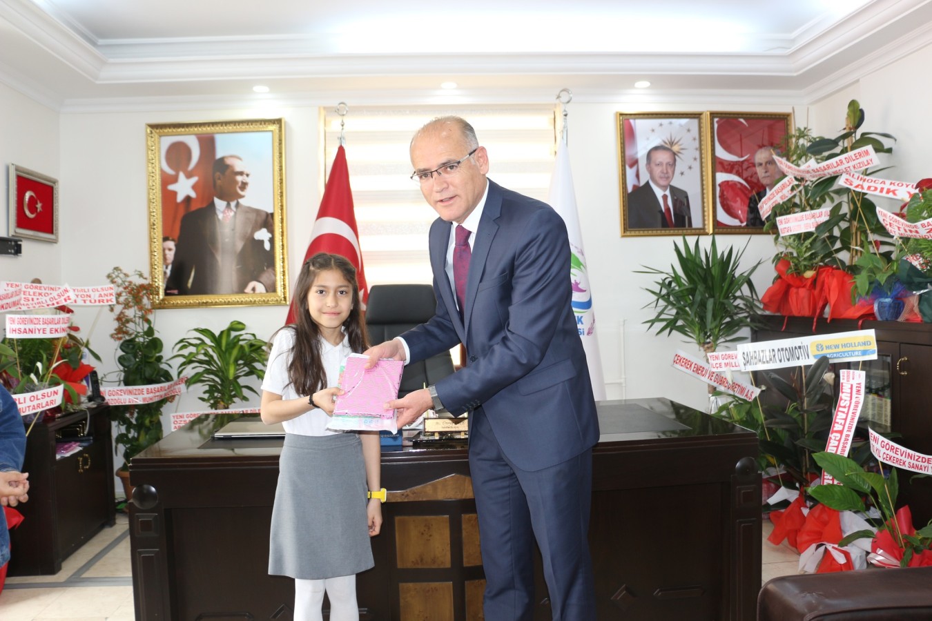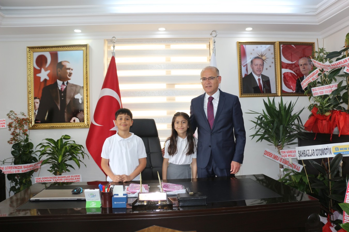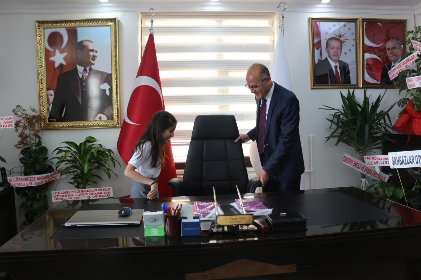 23 Nisan Ulusal Egemenlik ve Çocuk Bayramı dolayısıyla Çekerek Belediye Başkanı Av. Üzeyir İNCE’nin makam koltuğuna Akbay İlkokulu 4/B sınıfı öğrencileri Hira TUZLU ve Tahsin Eren KAPLAN'a teslim edildi.